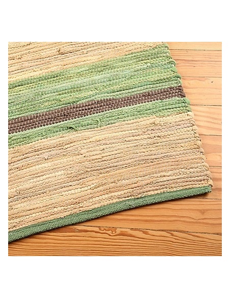 Dale estilo y calidez a tus ambientes con la Alfombra de Rayas Verde y Beige.