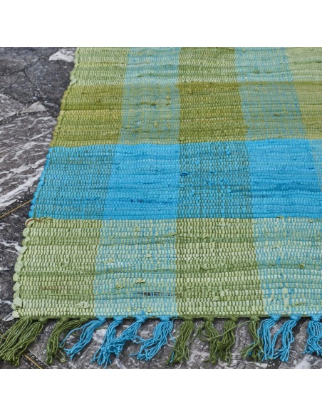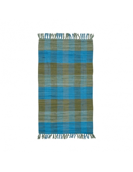 Alfombra Ambiente Cuadros Celeste Verde Nanden 70 X 120 Pasillo